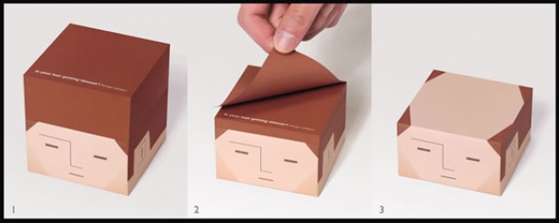 Promotional products were never used quite as well as these memo pads from Pantogar revitalizer. With each memo sheet, you're reminded of the problems of hair loss as the "hair" on each memo becomes thinner and thinner. Simply ingenious.